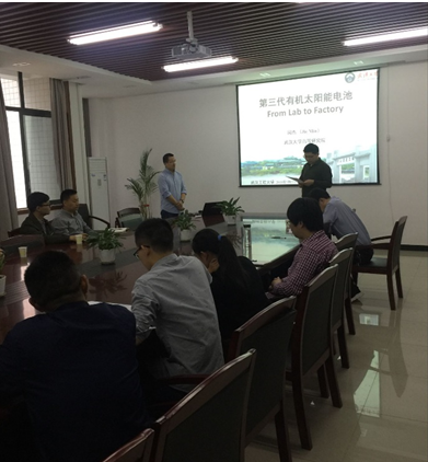 (通讯员 熊礼威)5月22日上午,应材料科学与工程学院邀请,武汉大学高等研究院闵杰研究员访问我校并在材料科学与工程学院A314会议室作了题名为“第三代溶液可加工的有机光伏:从实验室到工厂”的学术报告。报告会由材料科学与工程学院党委书记、院长刘治田教授主持,学院从事相关研究的师生到场聆听报告,并与闵杰研究员进行了深入交流。