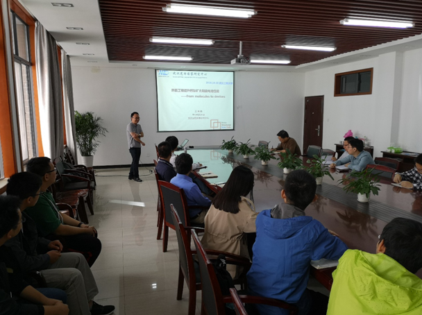 王鸣魁教授的报告介绍了有机无机杂化钙钛矿材料在光电研究领域的广泛应用,详细讨论了器件的电荷抽取和传输特性,提出了通过碳量子点、石墨烯等材料对平板型钙钛矿太阳能电池中的电子传输层进行界面修饰的方法,最终实现了光电转化效率超过20%的钙钛矿太阳能电池。其报告对于研究有机无机杂化钙钛矿材料,高效率钙钛矿太阳能电池的制备具有极大的指导意义。报告结束后,王鸣魁教授与参会的教师、研究生、本科生围绕报告中的相关内容进行了互动交流,并介绍了自己在科学研究中的心得体会。整场报告深入浅出,现场师生互动气氛活跃,我校师生获益匪浅。