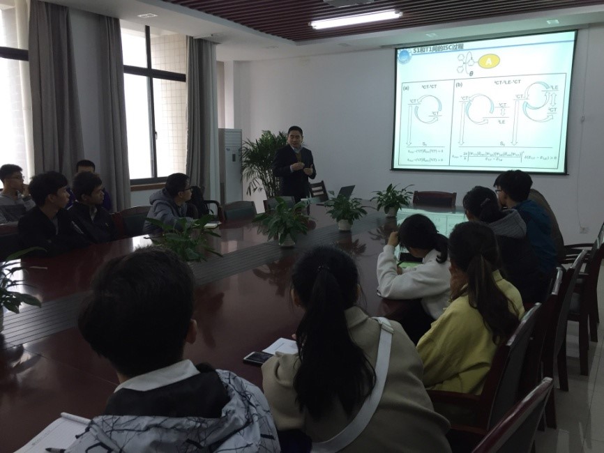 2018年11月12日上午,应材料科学与工程学院邀请,华南理工大学苏仕健教授来我院参加“材苑讲坛(第6期)”,在材料科学与工程学院A314会议室做了题为“高性能纯有机电致发光材料与器件”的学术报告。材料科学与工程学院党委书记、院长刘治田教授主持并致欢迎词,材料科学与工程学院从事相关研究的师生参加了报告会,并与苏仕健教授进行了深入交流。