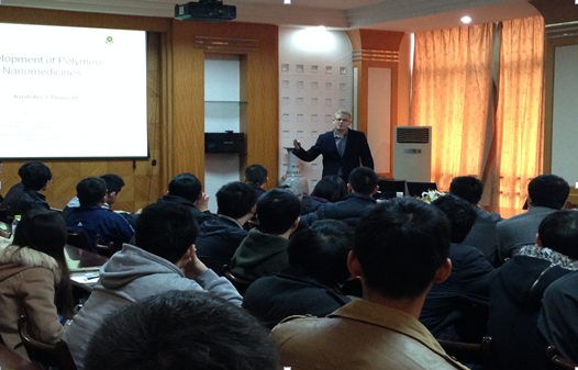 本网讯(通讯员 鄢国平 )近日,应我校外事处、材料科学与工程学院邀请,澳大利亚昆士兰大学、澳大利亚生物工程和纳米技术研究所Kristofer J. Thurecht副教授来我校进行2天的访问,并在武昌校区电教中心九楼会议室为我校师生作了题为“Molecular Imaging Agents Responsive to In Vivo Signals”的学术报告。报告会由材料科学与工程学院教授鄢国平博士、刘辉博士共同主持,我校100余名师生到场聆听了此次学术报告。Kristofer J. Thurecht博士在报告中主要介绍了他领导的科研小组对生物靶向性分子影像诊断剂及生物体内疾病的成像诊断研究。整场学术报告严谨、生动,使到会师生受益匪浅。学术报告结束后,Kristofer J. Thurecht博士热情的回答了在场师生提出的学术问题。