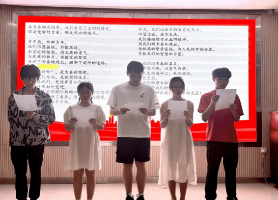 会议上,材料学子们认真学习领会习近平总书记五四青年节对全国广大青年的寄语精神内容并且结合自身学习、工作实际和青年榜样的先进事迹,畅谈了对五四精神的理解和感悟。最后,同学们通过朗诵《青春中国》,生动地展现了青春的活力和坚定的决心。在一次次响亮的“请党放心,强国有我”的誓言中,本次活动圆满落下帷幕。