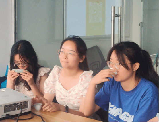 品茶过程中,同学们依次分享对茶的了解和对“告别”这一话题的感悟。来自不同地区的同学们对茶的初印象不尽相同,但都表达了对茶的喜爱和对茶文化的兴趣,而正值毕业季,大家回忆了从小到大的离别场景,表示要学会正视告别这一议题,珍惜身边人,相约奔赴理想的未来。