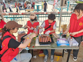 义卖淀粉肠和剪纸艺术同样受到了居民的普遍认可和热情回应。社区居民们都愿意为公益事业捐献自己的绵薄之力,还有学员展示自己心灵手巧的剪纸作品,最后,志愿者团队一起为社区保洁人员等基层工作者们送上礼物和祝福,表达对他们的尊敬与肯定。