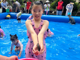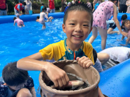 6月1日下午“小蓝钻”们早早地来到了活动广场,与工作人员一起布置起了水池,孩子们在家长的陪伴下,开心的跳进水池抓泥鳅,瞪大眼睛、全神贯注地盯着水中的鱼儿和小泥鳅。“哇,我又抓到啦”,每当有孩子成功捞到鱼儿时,现场都会发出热烈的掌声和欢呼声,孩子们互相鼓励,一起享受节日的快乐。
