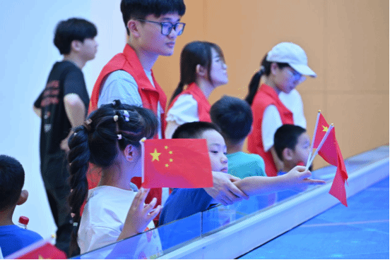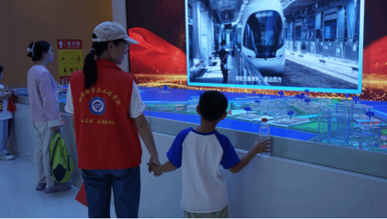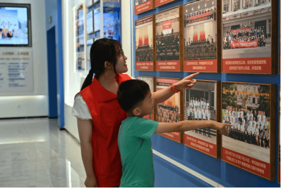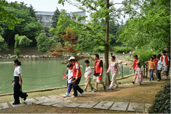 参观校史馆时,小朋友们被一幅幅历史照片和一件件珍贵文物深深吸引,他们好奇地提问,认真地聆听,对大学的历史和文化底蕴有了初步的了解。在艺术学院研究生毕设展区,他们惊叹于学长学姐们的创新设计和科研成果,激发了对科学探索的兴趣并不禁赞叹:“哥哥姐姐们做的好漂亮!我也要好好学习,未来做超级超级好看的机器人!”这份纯真的赞叹,是对未来无限可能的向往。随后,孩子们漫步在校园中,他们惊叹于大学的美丽风光,一位小女孩拉着妈妈的手,兴奋地说:“哇,原来大学的校园这么大,这么漂亮,我好喜欢这里,长大了我也要考到这么美丽的校园里读书。”这是他们对未来的憧憬,是对知识殿堂的向往。校园里宽敞的操场、静谧的图书馆、绿树成荫的小道,每一处都让他们流连忘返。