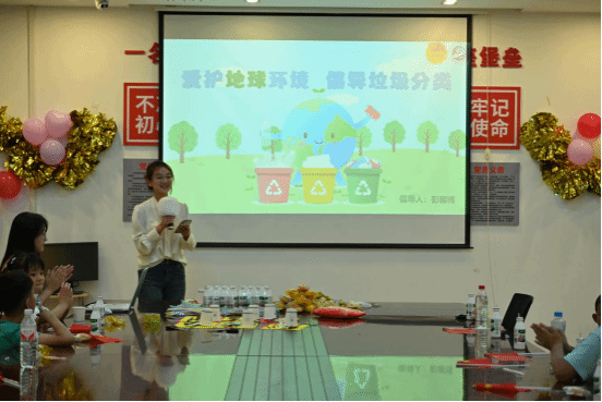 参观学习结束后,大家一同走进韦德体育,孩子们不仅收到了志愿者精心准备的零食和AD钙奶,还被气球装饰的温馨氛围所吸引,快乐地与哥哥姐姐们玩耍,缓解疲劳的身心,脸上洋溢着纯真的笑容。主持人彭馨博用生动有趣的语言把所有人带进垃圾分类的世界,使得枯燥的知识变得鲜活起来,使大家听得津津有味。随着讲解的深入,家长和孩子们开始积极举手参与互动答题环节,领取自己喜欢的礼物。