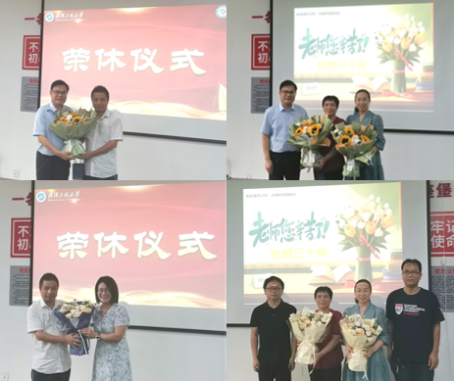 学院领导班子和教师代表相继送上了最诚挚的敬意与祝福,对三位教师在学科建设、人才培养、教学科研、实验室建设等方面的贡献表示感谢,并表示一定要向三位老师学习,弘扬教育家精神、发扬孺子牛精神,无私奉献、先公后私、冲锋在前,做眼里有学生、心中有爱意、春风化雨的好老师。