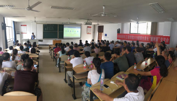 (通讯员 熊兆胜男) 9月3日下午,材料科学与工程学院举行了2019级新生家长“面对面”交流会。学院院长江学良、党委副书记肖平、学生工作办公室主任王博、2017级辅导员熊兆胜男出席了本次交流会。交流会由2019级辅导员史梦璐主持。