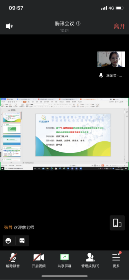 本届大赛决赛采用线上答辩方式进行,我院学生突出项目特色,举止得体大方,叙述简洁明晰,充分展现出材料学子良好的精神风貌。黄华波老师指导的涂金英团队作品《基于气-液界面反应的二氧化锰@聚苯胺纳米复合材料绿色合成及其在锌离子电池中的应用》脱颖而出,荣获大赛一等奖,由李亮老师指导的冯新畅团队作品《碳化蛋壳膜基复合凝胶材料的制备及其在柔性超级电容器中的应用》获得大赛三等奖。