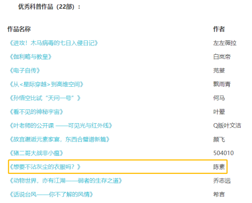 本次大赛项目历时近4个月,大赛面向18-45岁之间对科普科幻创作感兴趣、具有良好创作基础的中国青年(含博士、硕士研究生)。经过专家评委和社团评委评审,从150余部参评作品中共选出50部优秀作品,其中科普作品22部,科幻作品28部。