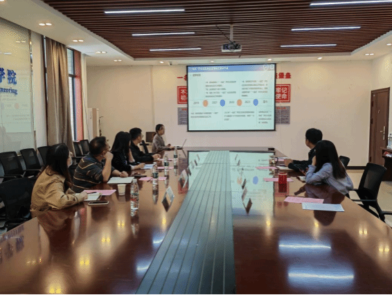 王涛代表学院对库文静一行表示热烈的欢迎,并简要介绍了学校、学院的办学历史、师资力量、学科建设、科学研究、人才培养等情况。围绕“聚精会神抓党建、一心一意谋发展”学院党建工作理念,介绍了学院“党史塑风”党建工程,并就“党建+”五大行动、党建融合推动业务等方面的具体做法进行了分享。