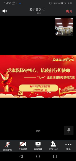 本网讯(通讯员柯贤忠)根据校党委组织部《关于开展全校基层党组织常态化疫情防控“四个一”行动方案的通知》要求,围绕“让党旗在防控疫情斗争第一线高高飘扬”为主题,在建党99周年之际,为庆祝党的生日,进一步引导师生党员不忘初心、牢记使命,激励师生党员新担当新作为。7月1日,韦德体育在材料楼A314会议室开展了主题为“红旗飘扬守初心、抗疫前行担使命”的“七一”主题党日暨专题微党课活动,学院领导班子成员、党委委员、组织员、教工党支部书记、学院办公室全体人员参会,全体师生党员线上参会,会议由学院党务干事柯贤忠主持。