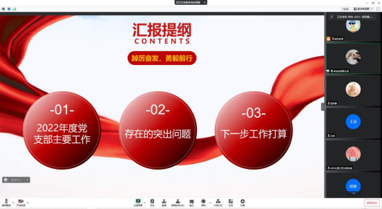 王涛充分肯定了一年来支部书记在推进“党史塑风”党建工程上取得的成效,支部各事项不断规范,有效助力了党建规范年开展。同时,他客观指出了各支部存在学习教育抓在经常但落在日常上不够、树立了标杆模范但落在全面示范上不够、支部堡垒建立了规章但落在规矩上不够等三个共性问题。他强调2023年要持续做好三个方面的工作:一是加强理论武装,对党的二十大精神和习近平新时代中国特色社会主义思想的学习要抓在经常融入日常,提升理论指导实践的水平;二是加强基层组织建设,进一步提升党支部的组织力、战斗力、凝聚力;三是要提升工作能力,支部书记要不断提升工作能力和水平抓好党建工作。