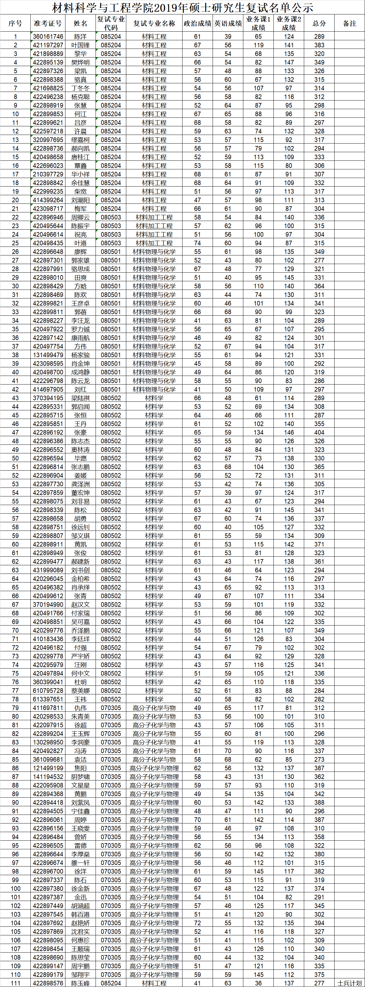 材料科学与工程学院2019年硕士研究生复试名单公示