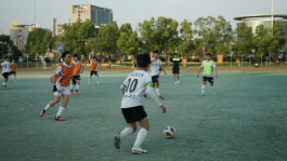 在冠亚军决赛中,双方球员都毫不示弱,纷纷展现出各自细腻的脚法。球员在彼此的默契配合下,化工与制药学院以一记巧妙的射门,为本次决赛赢得第一球。你追我赶,不甘示弱。双方球员都使出浑身解数,头脚并用,比赛进入了白热化阶段。在下半场接近尾声时,在国际学院球员的缜密部署,默契配合下,进了关键一球,扳平了比分。场外观众的欢呼呐喊不绝于耳,响遏行云,为燥热的天气平添了一份慰藉。在休息、补水后,比赛进入加时赛,烈日炎炎,热浪滚滚,也未能阻挡双方球员对比赛的热情,球场上很快便沸腾起来,双方攻势此起彼伏,只见足球在球员脚下“你来我往”,令观众们拍手叫绝。最后,国际学院打破僵局,在加时赛踢进三个球,最终以4:1赢得了比赛。