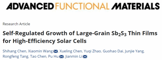2022级研究生陈士航以第一作者身份在《Advanced Functional Materials》上发表题为“Self-Regulated Growth of Large-Grain Sb2S3 Thin Films for High-Efficiency Solar Cells”的研究论文。韦德体育王小敏博士、胡朴教授为通讯作者。