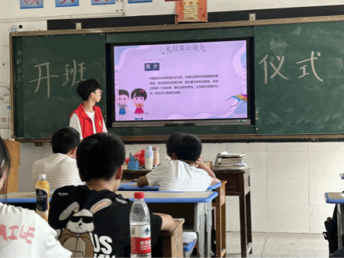 随后,志愿者老师们以饱满的热情开始了正式的教学工作。在文明礼仪课程中,老师们耐心教导学生要讲究礼貌、守规矩,强调在日常生活中使用文明语言、保持良好的行为举止,尊重师长和同学,共同营造和谐的校园文化氛围。在推广普通话的课程上,通过形象生动的讲解和有趣的互动练习,如故事讲述、朗诵和对话,帮助学生纠正方言口音,提高普通话的准确度。