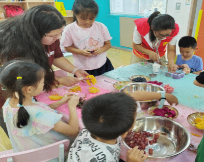 炎热的下午,清凉冰粉的制作品尝课让孩子们欢呼雀跃。在老师、志愿者的指导下,他们开始调配糖水、加入水果、果仁等配料,品尝着自己亲手制作的冰粉,那甜蜜的滋味让孩子们体会到了劳动所带来的快乐和成就感。
