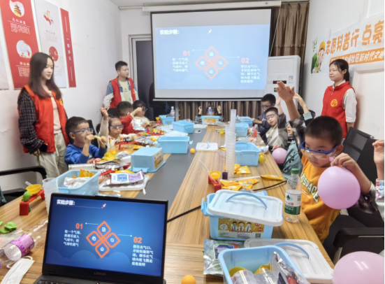 活动中,志愿者们以“飞檐走壁”和“探究压强原理”两个实验为主题,带领孩子们一起动手操作,从准备材料到实验步骤,每一个环节都充满了乐趣。在“飞檐走壁”实验中,孩子们通过观察硬币在气球内壁旋转的现象,对向心力这一科学原理产生了浓厚的兴趣。随后,在“压强原理”实验中,孩子们亲手操作矿泉水瓶和气球,亲身体验了大气压强的神奇力量。