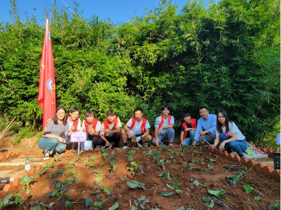 活动伊始,在秋日的暖阳下,师生们共同协作,经过观摩学习后,动手分苗、铲土、翻地、种苗、填土、浇水,齐心协力栽种菜苔,体验劳动的快乐。