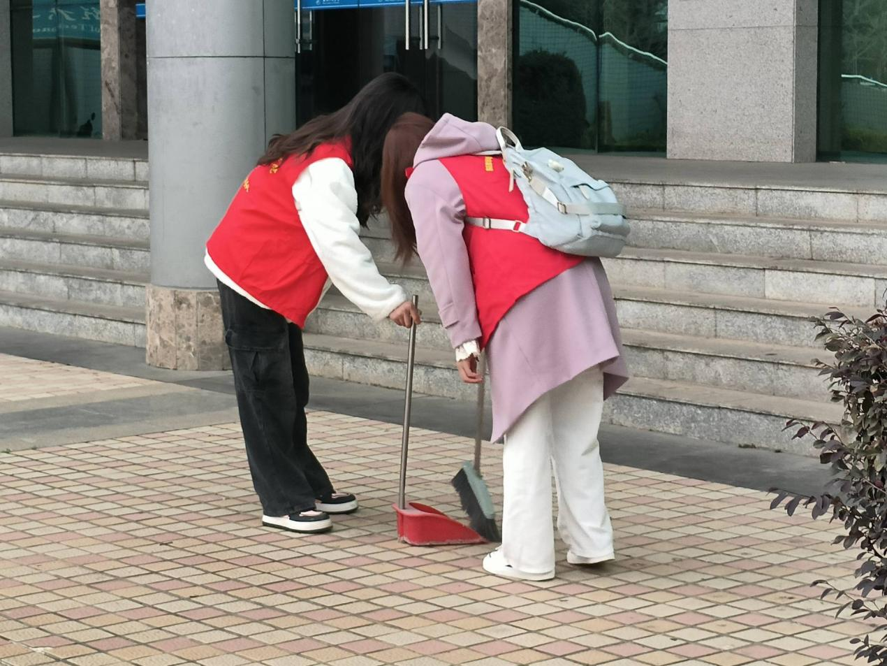 “我们常说学雷锋,但雷锋精神不只在书本里,更在日常的举手之劳中。”10日清晨,志愿者们早早来到大礼堂前广场集合。春寒料峭,但现场却热闹非凡:有人手持扫帚仔细检查工具,有人蹲在地上分装垃圾袋,还有人举着手机拍摄记录。红马甲在林荫道路中格外醒目,仿佛一片跃动的志愿之火。