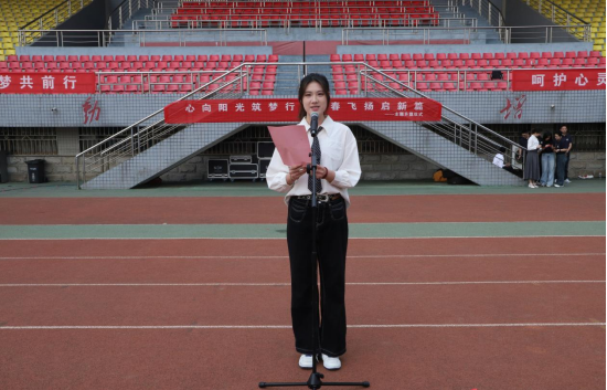 材料科学与工程学院心理委员代表魏靖雯以“树立科学心理健康观念”为主题,结合日常生活实际,分享心理调适方法,呼吁同学们关注心理健康,培养理性平和、向阳而生的积极心态,用行动书写青春的奋进篇章。