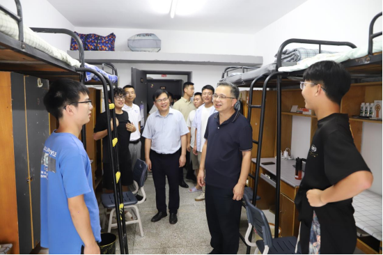 9月12日,校党委书记汪伟、后勤保障处等职能部门负责人与学院领导班子走进教辅8栋研究生宿舍,与新生面对面交流。“宿舍环境还习惯吗?”“宿舍用品准备齐全了吗?” 一句句贴心问候驱散了新生初来乍到的陌生感。同时鼓励同学们要珍惜同窗缘分,互帮互助、共同成长,做好学业规划,夯实专业基础,勇攀科研高峰,争取做一名优秀的科研工作者,在大学舞台上绽放光彩。