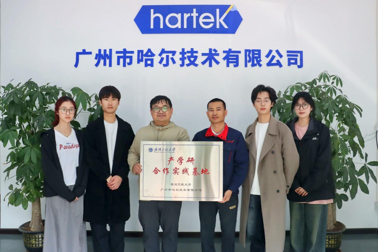 授牌仪式后,实践团成员与哈尔技术工作人员并肩而立,郑重举起学院院旗,定格下这场跨越地域的产学研携手瞬间。