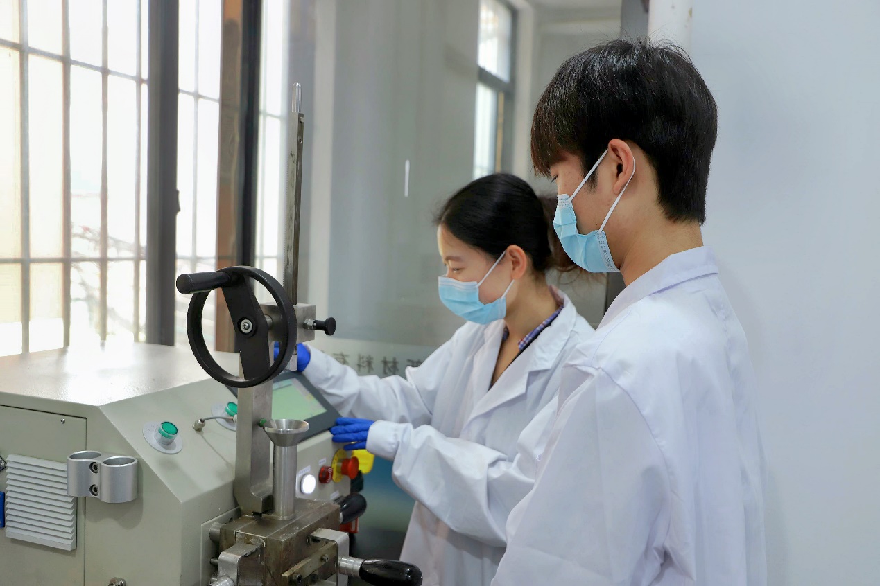 实践团走进广东省佛山市博士和博士后创新创业孵化基地,这座以“新材料+生物医药”双轮驱动的科创引擎,正围绕高端装备制造、新材料、数字信息三大集群孕育着诸多硬核科技成果。在基地科研人员的引导下,材料学子穿梭于透明化管理的开放式实验室集群,全景式观察各类精密仪器的运行原理,直观感受科研成果从实验室走向产业化的转化路径。在基地安博士的悉心指导下,同学们亲自动手操作密炼机等专业实验设备,从每一个操作步骤中深刻体会“科学严谨性”的真正内涵。“每一次精准称量都是对科学的忠实捍卫,工匠精神不是重复劳动,而是将工艺分解为数百个指标,在误差中持续优化。”实践团成员张思涵在实操后分享道。