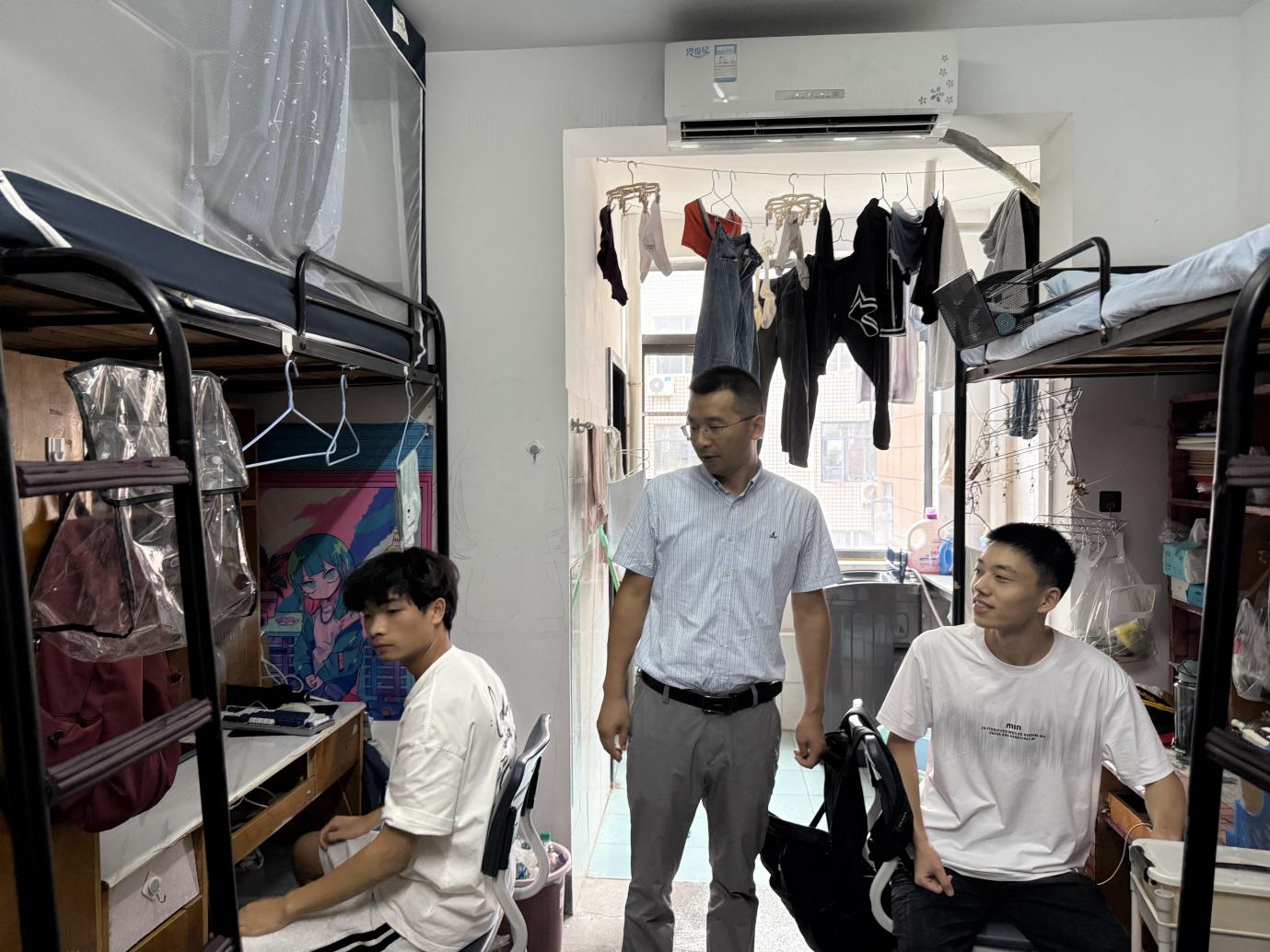 下午14时,党委副书记马科带领各年级辅导员、班主任走进学生宿舍,与同学们面对面交流,把学院的关怀送到学生身边。在宿舍走访过程中,老师们详细询问学生返校后的适应情况,查看宿舍环境卫生、安全设施及生活物资储备情况,提醒同学们注意用电安全、消防安全,引导大家养成良好的作息习惯和卫生习惯。