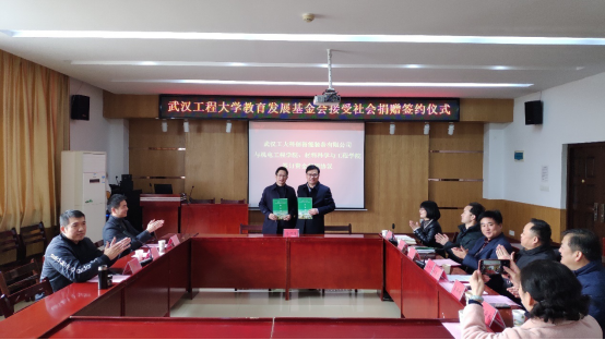 仪式上,基金会秘书长邓新洲代表基金会与武汉工大科创股份有限公司魏丛超先生与签订了捐赠协议。