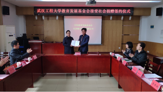 (通讯员郭燕)12月19日下午,我校教育发展基金会接受社会捐赠仪式在流芳校区机电学院205会议室举行。我校95级机制校友武汉工大科创股份有限公司总经理魏丛超向教育发展基金会捐赠资金两百万元,用于支持机电工程学院和材料科学与工程学院“双一流”建设。