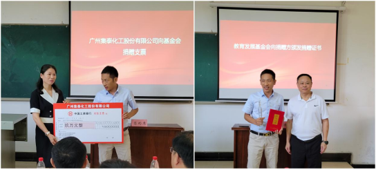 (通讯员田明华)9月15日下午,广州集泰化工股份有限公司向bevictor伟德官网捐赠签约仪式在流芳校区一教L1101室举行。广州集泰化工股份有限公司市场部华中大区经理张文华等企业来宾8人,bevictor伟德官网校友工作处处长邓新洲、教育发展基金会专职副秘书长毕灵敏,韦德体育党委书记王涛,院长江学良,副院长熊礼威、姚军龙出席签约仪式,韦德体育本科生及研究生代表参加了签约仪式,仪式由韦德体育党委副书记张琼主持。