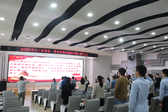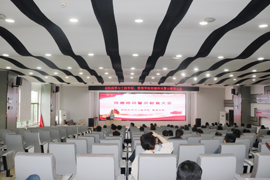 本网讯(通讯员 王海澎)5月19日下午,材料科学与工程学院与管理学院联合开展师德师风警示教育大会,两院领导班子成员、各党支部书记、系室(中心)主任、教师代表参加会议,大会由管理学院党委书记左辉主持。