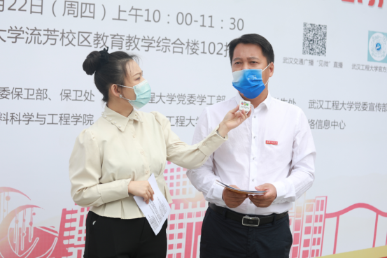 韩高军在接受现场采访中强调,学校始终弘扬生命至上、安全第一的思想,统筹安全与发展,始终把师生生命安全放在首位。同时他寄语广大新生,在即将迎来建校50周年校庆之际,希望同学们尽快熟悉校园环境,严格遵守疫情防控措施和各项安全管理规定,增强个人安全意识,尽快进入良好的学习生活状态。直播现场,韩高军还从共同打造平安校园工作机制、落实工作措施和工作成效显著三个方面介绍了我校警校联动方面的情况。