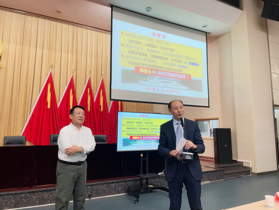 张院士以《陶瓷材料的复合及梯度化效应》为主题,从石器时代、陶器时代、青铜器时代、铁器时代到合成材料时代深入浅出地讲解了材料在人类社会进化过程中的里程碑作用,从自然的启示——竹子、祖先的智慧——越王勾践剑引入梯度的概念,通过梯度复合的功能化效应举例,“教之以事而喻诸德也”,从静高压到动高压,从陶瓷基复合材料和聚合物基复合材料到可陶瓷化聚合物梯度复合材料,实现了陶瓷基梯度复合材料的一系列关键技术突破,可以预见,梯度材料将在高压科学与地球深部研究、抗冲击装甲材料、热障梯度材料、梯度隐身材料、梯度光纤传感、医用生物梯度材料等领域有更多的突破。张院士勉励现场师生要树立文化自信和科研信心,目前我们国家的科研基础非常好,科研实力也在日益提升,大家要有科技强国的责任感和使命感,要有甘坐科研冷板凳的耐心,有攻克“卡脖子”技术的决心。