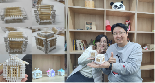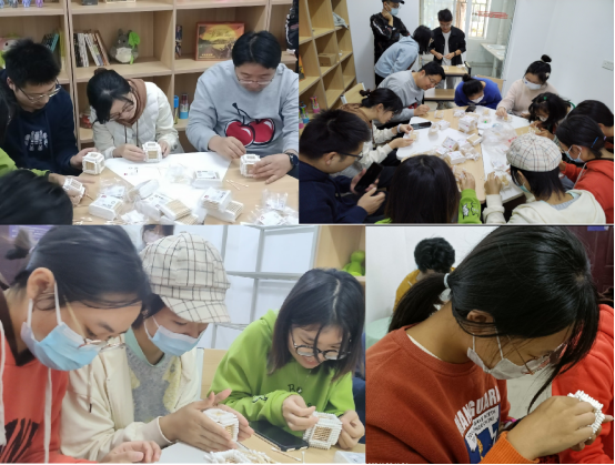 同学们给自己的房子涂上喜欢的颜色并命名,有喜欢《老友记》而把墙体涂成紫色的“莫妮卡”房,有蓝色的“天空之城”,还有原汁原味的白色房子。轻松有趣的棉签房活动,让同学们享受了初冬暖阳下的美好时光,放松了心情,为接下来的考试周蓄能充电。