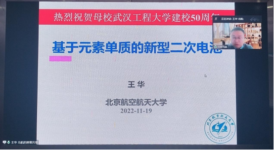 作为我校韦德体育2005届校友,王华教授首先回顾了自己在母校期间的学习经历,并对母校50周年华诞表示了热烈的祝贺。随后,王华教授以《基于元素单质的新型二次电池》为题进行了学术讲座。