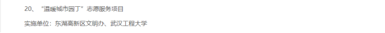 此次获评武汉市2022年度学雷锋志愿服务先进典型,是对该项目的最大肯定,也是对韦德体育志愿服务品牌塑造的最大激励,将通过此次获评辐射带动“我是小老师”爱心家教、环保科普活动等项目进一步发展。(审稿:王涛)