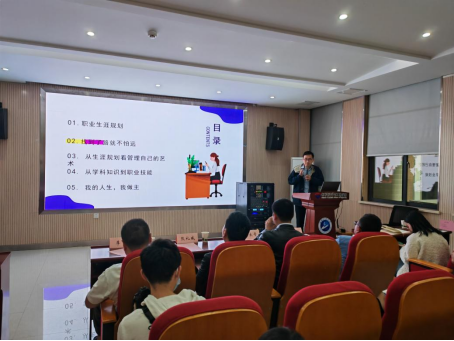 蔡晨给同学们做了题为《大学生职业生涯规划和职场转身》的经验分享,指导同学们如何做好适合自己的职业规划,鼓励大家努力提升自己的“软件”和“硬件”,做自己职业生涯的主人。最后,集泰股份进行了专场招聘宣讲,并现场进行了面试。(审稿:王涛)