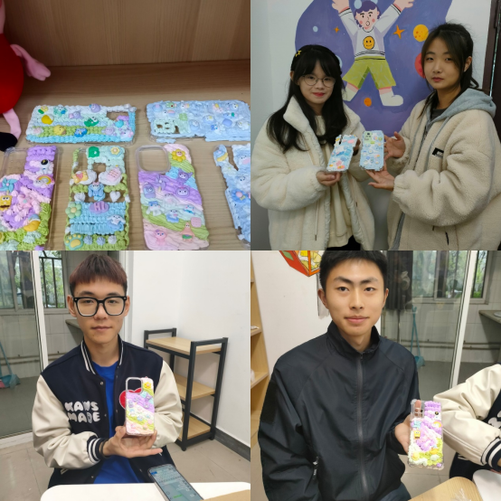 手机壳的样式是一个人内心世界的体现,DIY手机壳可以充分发挥同学们的主观能动性,表达内心情绪,释放消极和不良情绪,收获成就感。通过自己的摸索和如是心理协会成员的讲解,同学们掌握了技巧,大家静心参与,互相欣赏彼此的作品,分享创作的灵感和理念,心中的压力一扫而空。在轻松愉快的氛围中,同学们学会了用艺术的形式察觉情绪、表达内心想法。