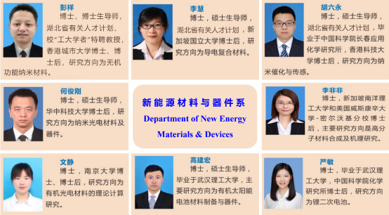 我校新能源材料与器件系成立于2019年,已组建8人的青年教师团队,全部具有博士学位,4人具有海外留学经历,4人次入选湖北省组织部/教育厅有关人才计划。依托我校材料科学与工程学院,立足于化学、材料学、工程学、生物学等多学科交叉领域,在光能利用与减污降碳领域科技创新方面已取得系列成果。承担国家级科研项目8项(包括1项国家重点研发计划“变革性技术”课题)、湖北省重点研发计划和湖北省自然科学基金项目7项;团队成员以第一/通讯作者在Natl. Sci. Rev.(中国科技期刊卓越行动计划领军期刊)、J. Energy Chem.(中国科技期刊卓越行动计划重点期刊)、J. Mater. Sci. Technol.(中国科技期刊卓越行动计划重点期刊)、CCS Chem.(中国化学会旗舰新刊)、Coordin. Chem. Rev.、Adv. Mater.、Adv. Funct. Mater.、Angew. Chem. Int. Ed.、ACS Energy Lett.、ACS Nano、Appl. Catal. B、Nano Energy等中科院一区TOP期刊发表论文60余篇,其中IF >10的40余篇、IF >20的10余篇、ESI热点论文1篇、高被引论文7篇;承担教研项目1项,课程思政示范课程建设项目1项,发表教研论文3篇;2位老师曾获得教学评教全校第一名。