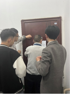 检查同学带队分别走访材料楼各实验室,向同学们宣传电信反诈知识、张贴警示信息、并检查实验室有无安全隐患。在实验室现场及时进行安全提醒与隐患排除,同时进行反诈骗知识宣讲,使反诈与安全入脑、入心、入行。