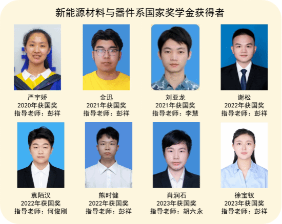 在学生培养方面,新能源材料与器件系致力于培养具有优秀科研素质、创新思想、突破精神的新能源材料与器件及相关领域人才。近年来,已有8名学生获得国家奖学金,主持第十六期校长基金项目8项并全部顺利结题,获批大学生创新创业大赛项目省级立项2项,完成“互联网+乡村公益”项目1项并取得校级铜奖,获2023年“建行杯”第十六届全国大学生节能减排社会实践与科技竞赛三等奖、第十八届“挑战杯”全国大学生课外学术科技作品竞赛“黑科技”专项赛卫星级奖、湖北省第十四届“挑战杯·中国银行”大学生课外学术科技作品竞赛二等奖等奖项。(审稿:王涛)
