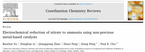 氢气的密度小、液化温度低以及储运困难和安全性差等问题一直是制约氢能产业发展的主要瓶颈。为了解决这些问题,氢氨融合技术成为了国际清洁能源领域的前瞻性、颠覆性和战略性技术发展方向。在这一背景下,采用电化学还原技术将废弃的硝酸盐污染物转化为氨成为一条重要的合成氨路径。研究团队综述了近年来在电化学合成氨领域中,单原子、单金属、双金属、化合物和异质结等多种催化剂的应用。论文从多个角度、多个层次阐述了这些催化剂在电化学还原硝酸盐合成氨技术中的机理及应用,为解决废弃硝酸盐污染物问题以及氢氨融合技术的推广应用提供了有益的指导。这篇综述论文以题为《Electrochemical reduction of nitrate to ammonia using non-precious metal-based catalysts》的形式发表在化学领域国际知名期刊Coordination Chemistry Reviews上。该期刊为中科院一区TOP期刊,影响因子为20.6,我校等离子体化学与新材料湖北省重点实验室和磷资源开发利用教育部工程研究中心为论文第一单位,2021级硕士生徐宝钗为论文第一作者,彭祥博士为通讯作者。