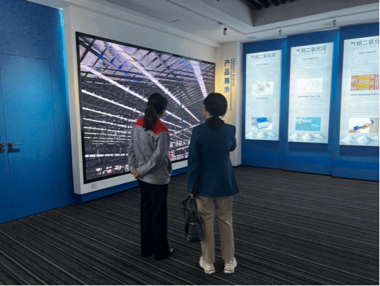 在杨芳芳的讲解下,深入了解了公司的发展历程、科技成果和发展规划。“公司重视人才培养,为企业员工提供了完整的成长通道和平台,员工可以在企业里继续提升学历、提供学习条件和夜校、丰富的娱乐空间,让所有员工来到汇富感到安心。”王静带领学校一行人参观研发生产实验室,介绍了公司的生产环境、实验设备以及产品,展现了一个创新研究型企业严谨、舒适的工作环境。