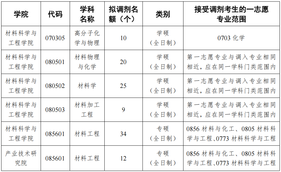 3. 调剂考生第一志愿专业与调入专业相同相近,初试科目与调入专业初试科目相同相近(其中初试全国统一命题科目应与调入专业全国统一命题科目相同)。符合《2025年全国硕士研究生招生工作管理规定》中相关调剂要求。接受调剂考生的一志愿专业范围见上表。