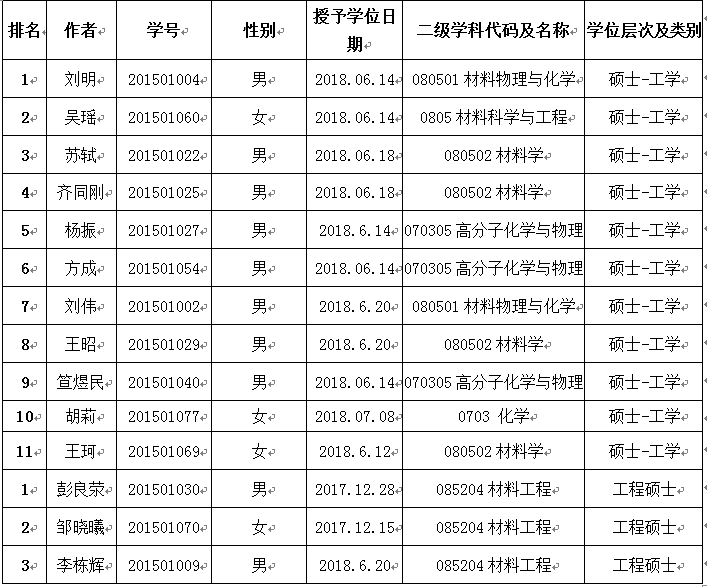 材料科学与工程学院“校优秀研究生学位论文”初审名单公示